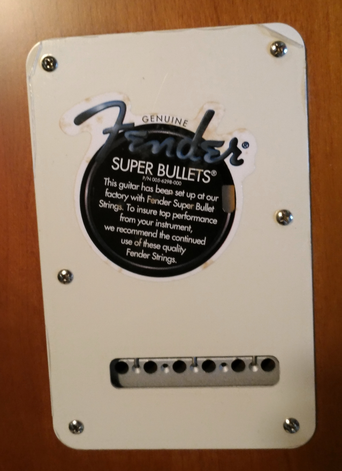 protective plastic at the knob end of the pickguard, and the protective plastic still intact on the back pickup cover.