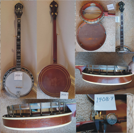 The rim was turned to fit the Price Classic 20 hole flat tone ring. The tailpiece is a prewar Presto punched for five string use by