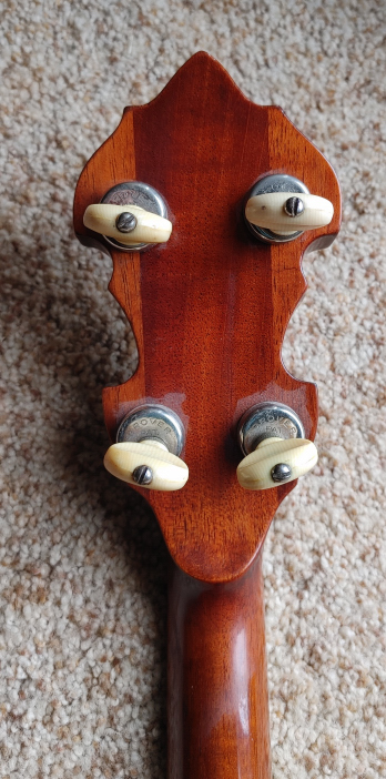 from the rear. Original five string necks had pegheads which appear identical to those on tenor or plectrum banjos (see photos of 9528- examples
