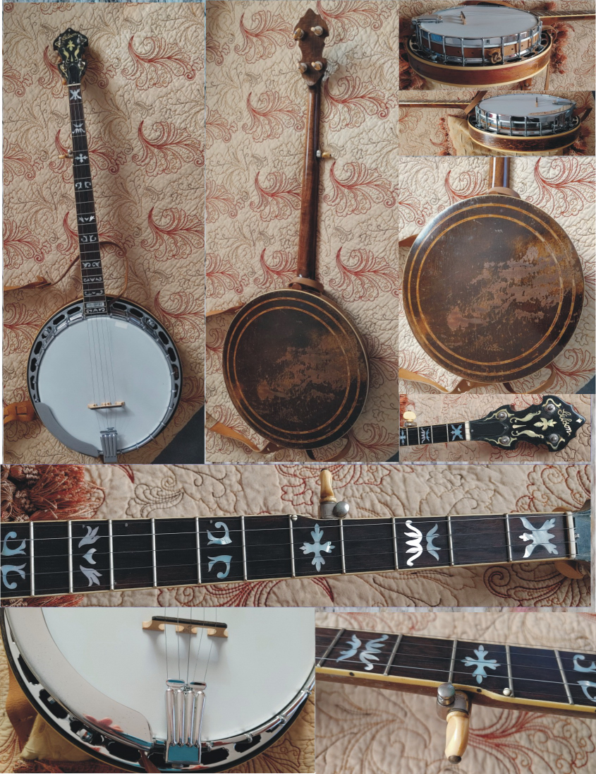 The tailpiece is an original five string prewar Presto and the tuners are the deluxe version of the Grover pancakes.